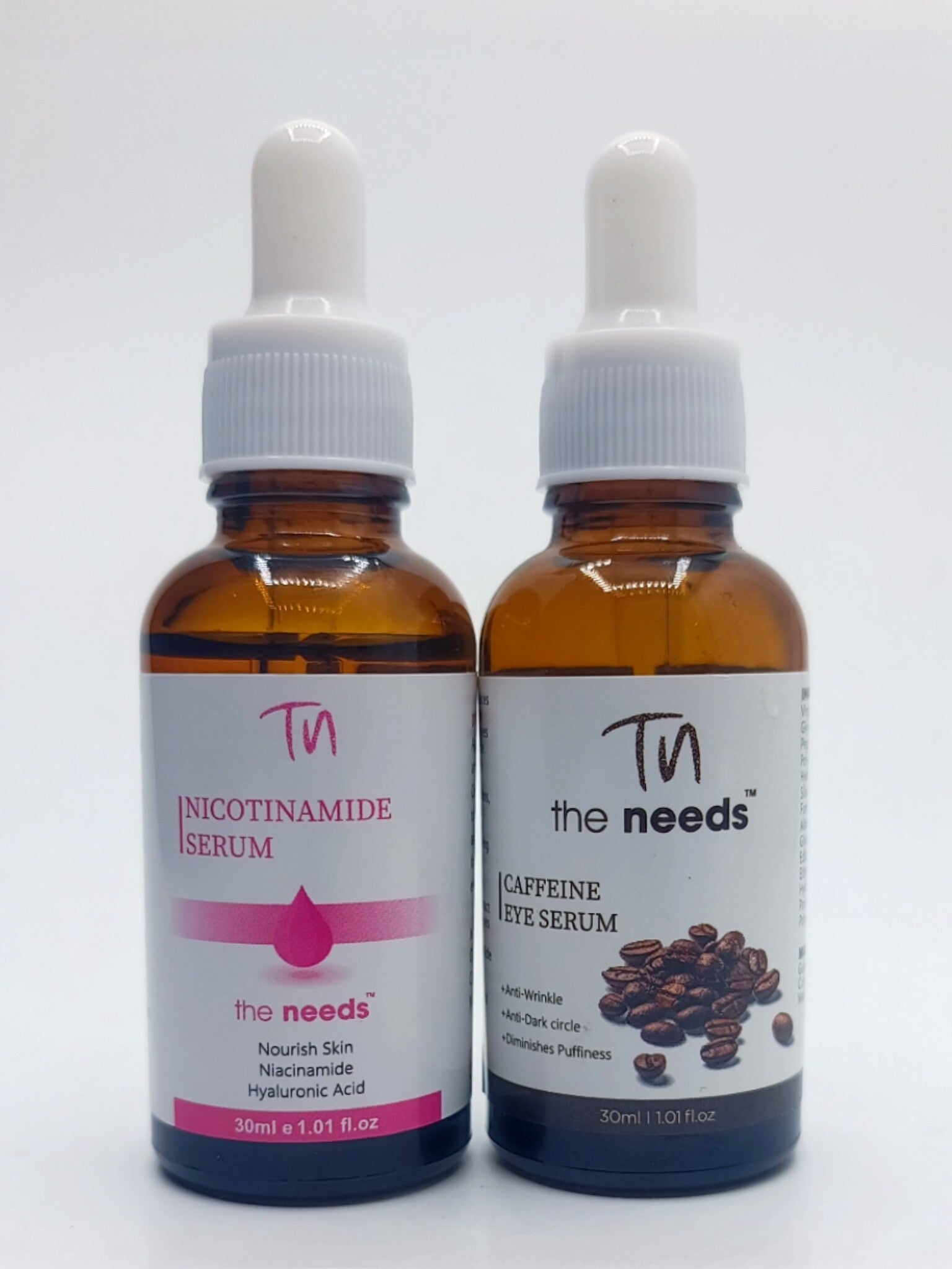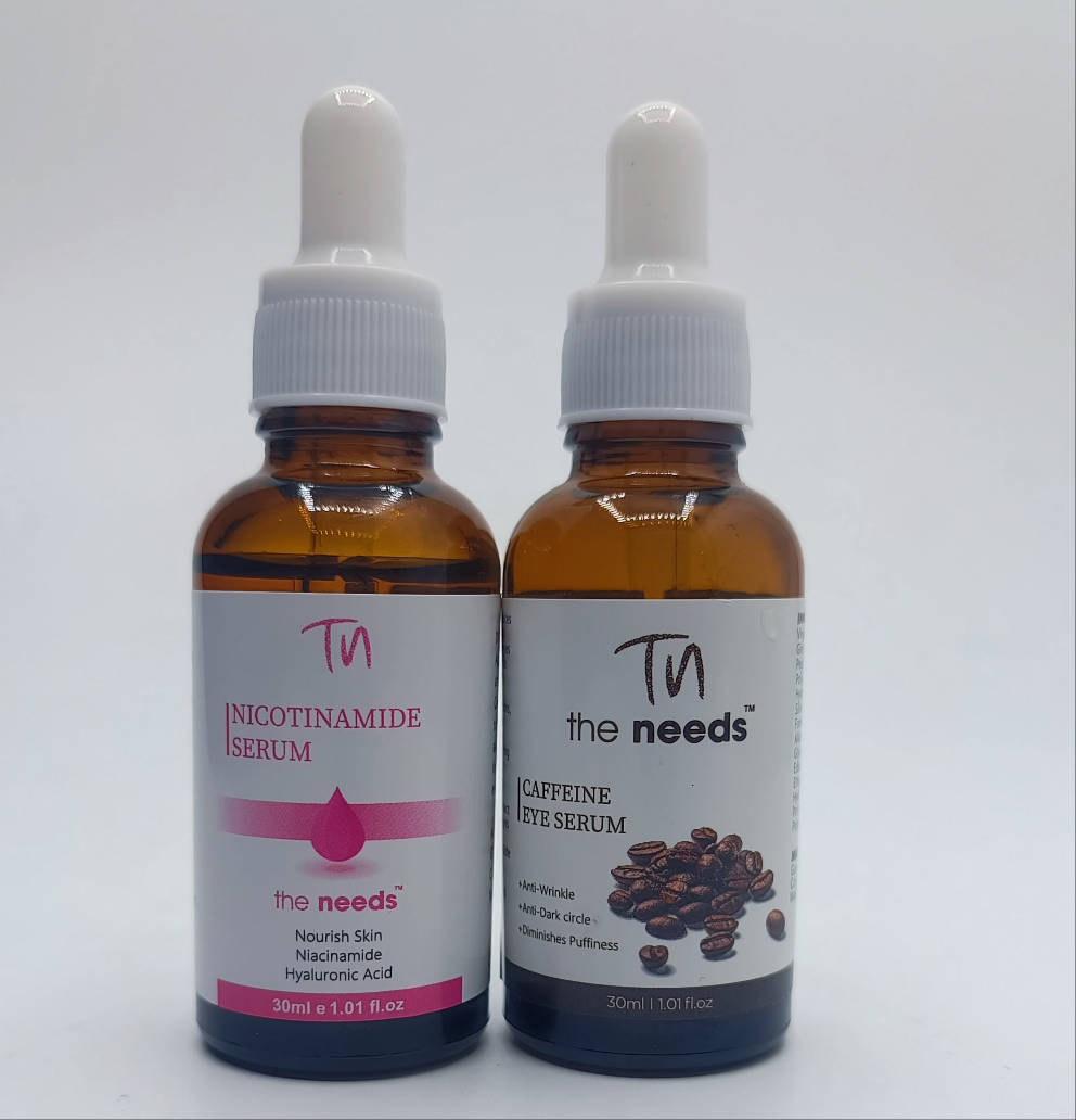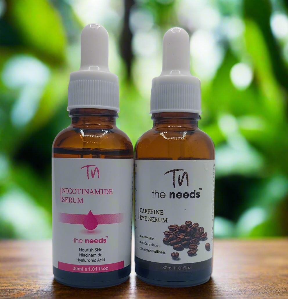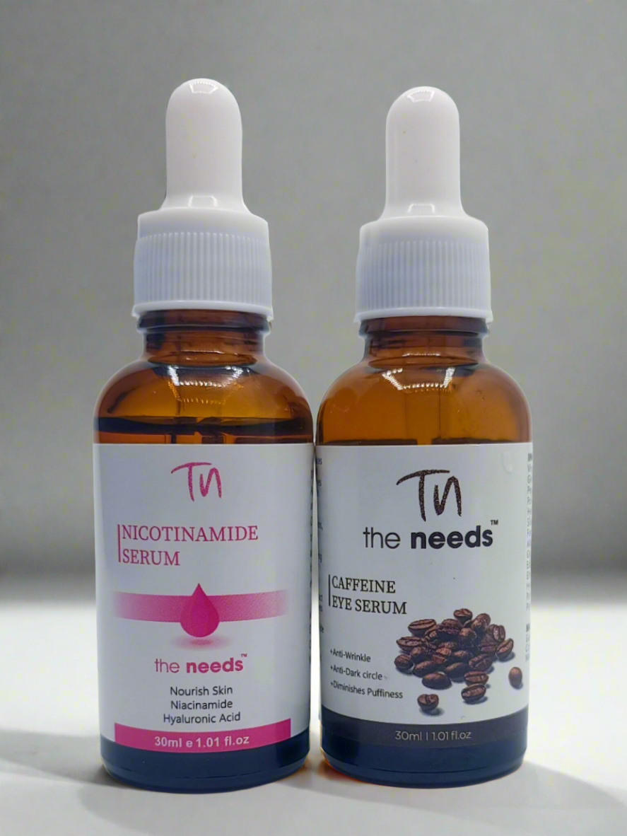The Caffeinated Glow-Up Duo by The Needs is your daily boost for brighter, smoother, and younger-looking skin. This powerful pair combines the brightening and pore-refining benefits of Nicotinamide Serum with the targeted care of Caffeine Eye Serum to reduce dark circles, puffiness, and fine lines around the eyes.