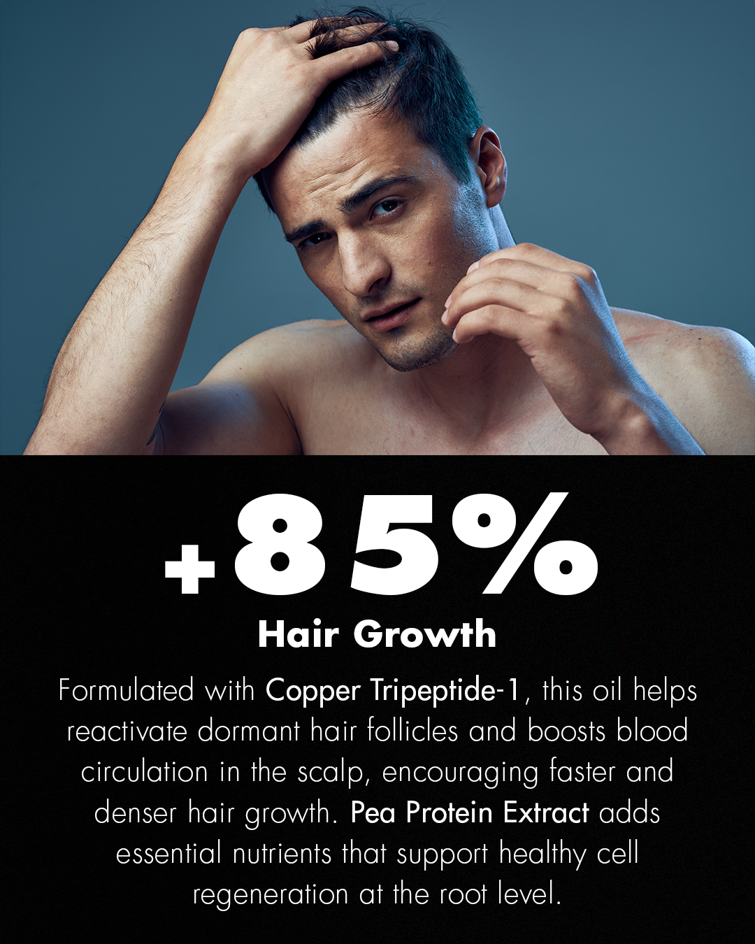 - Stimulates Natural Growth – Copper peptides increase blood flow for quicker, fuller hair growth