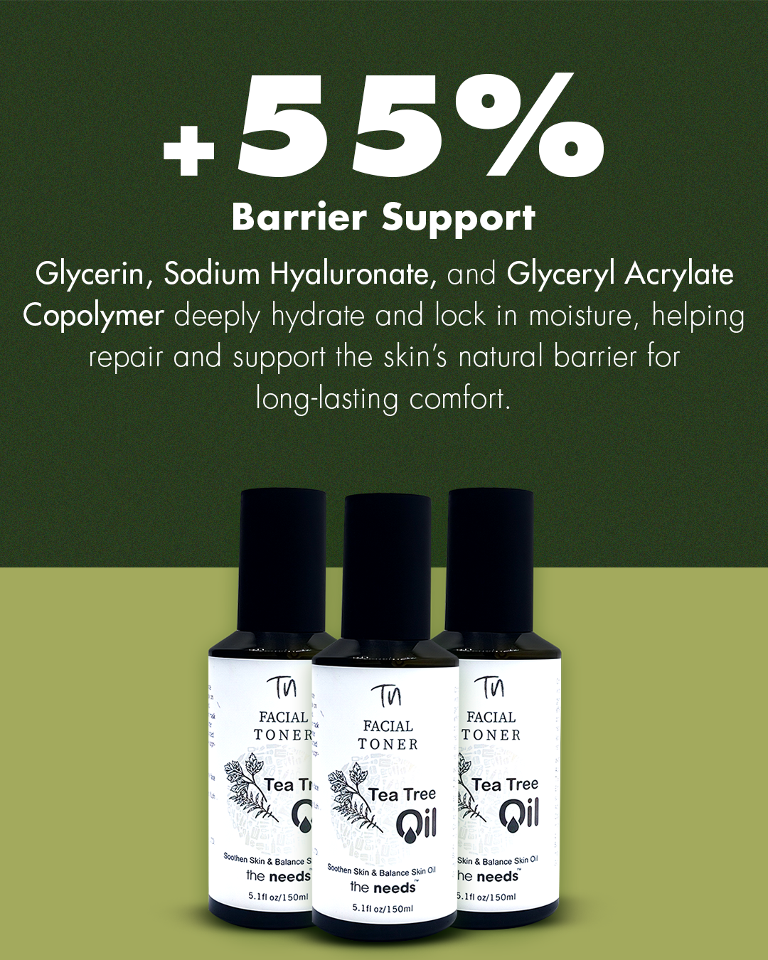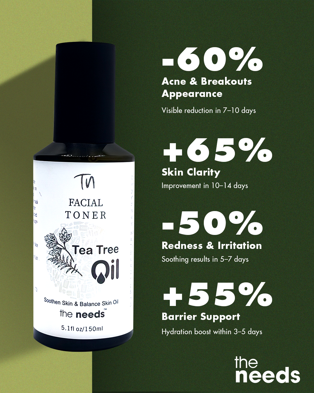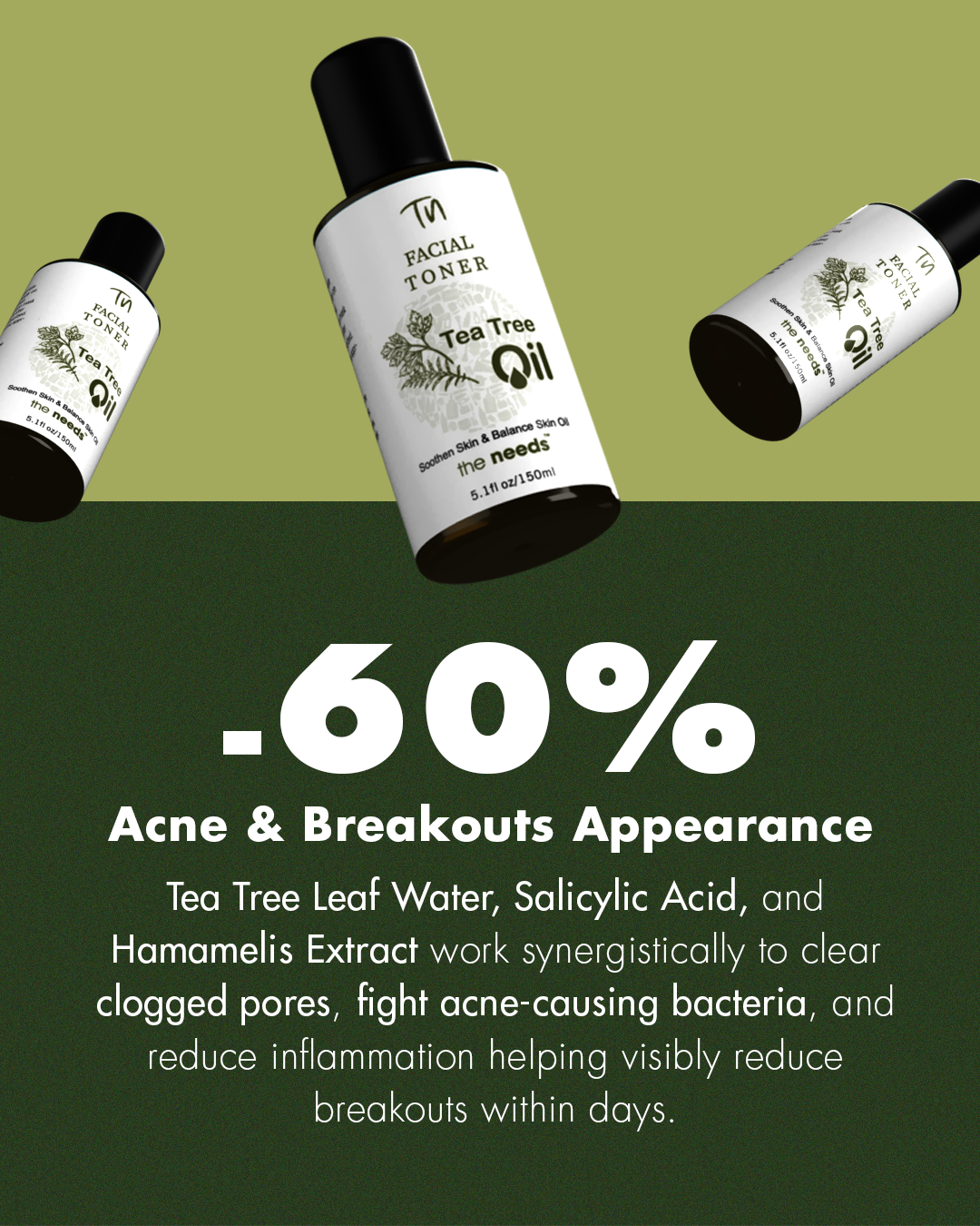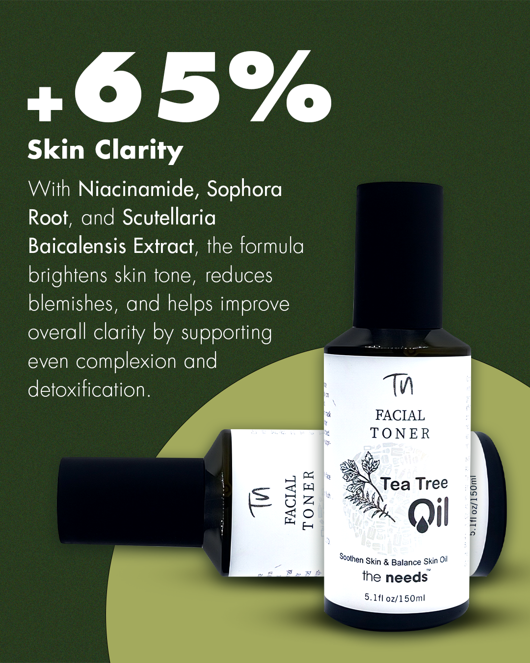 Balance your complexion the smart way with “The Needs” Tea Tree Toner, a precise solution to acne, oily skin, and blackheads. Infused with Tea Tree Oil, Glycolic Acid, and calming plant extracts, this daily toner exfoliates dead skin cells, reduces breakouts, and calms redness while maintaining your complexion even, clean, and visibly revitalized.