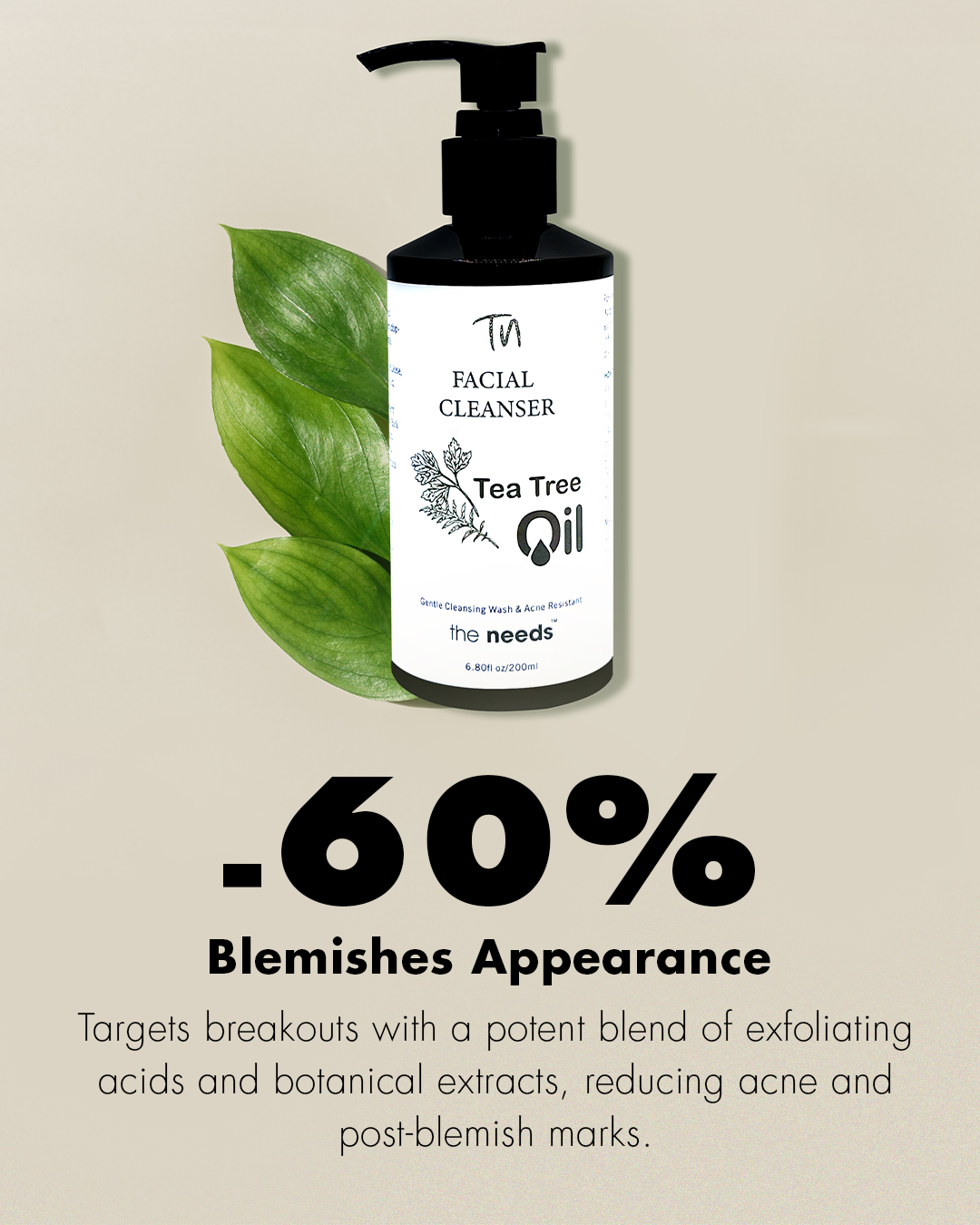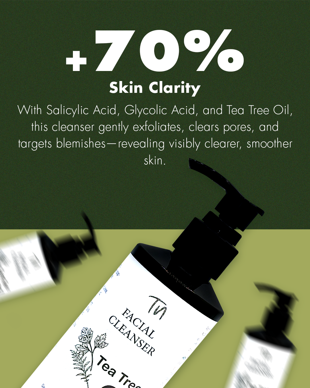 Presenting the Tea Tree Cleanser, a mild but effective daily facial cleanser designed to fight acne, minimize blemishes, and restore radiance to oily, acne-prone skin. With Tea Tree Leaf Oil and 10% Lauric Acid, this cleanser strips away excess oil, clears pores, and attacks dark spots and sun damage pigmentation, while soothing inflammation.
